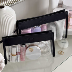 NEW! This versatile small clear pouch, crafted with soft Napa leather trim, is perfect for makeup, tech accessories, and other travel must-haves. Whether you’re storing chargers, cables, or cosmetics, this pouch brings style and convenience to your journey, keeping everything easily accessible and neatly contained. It's chic enough as a stand-alone clutch.