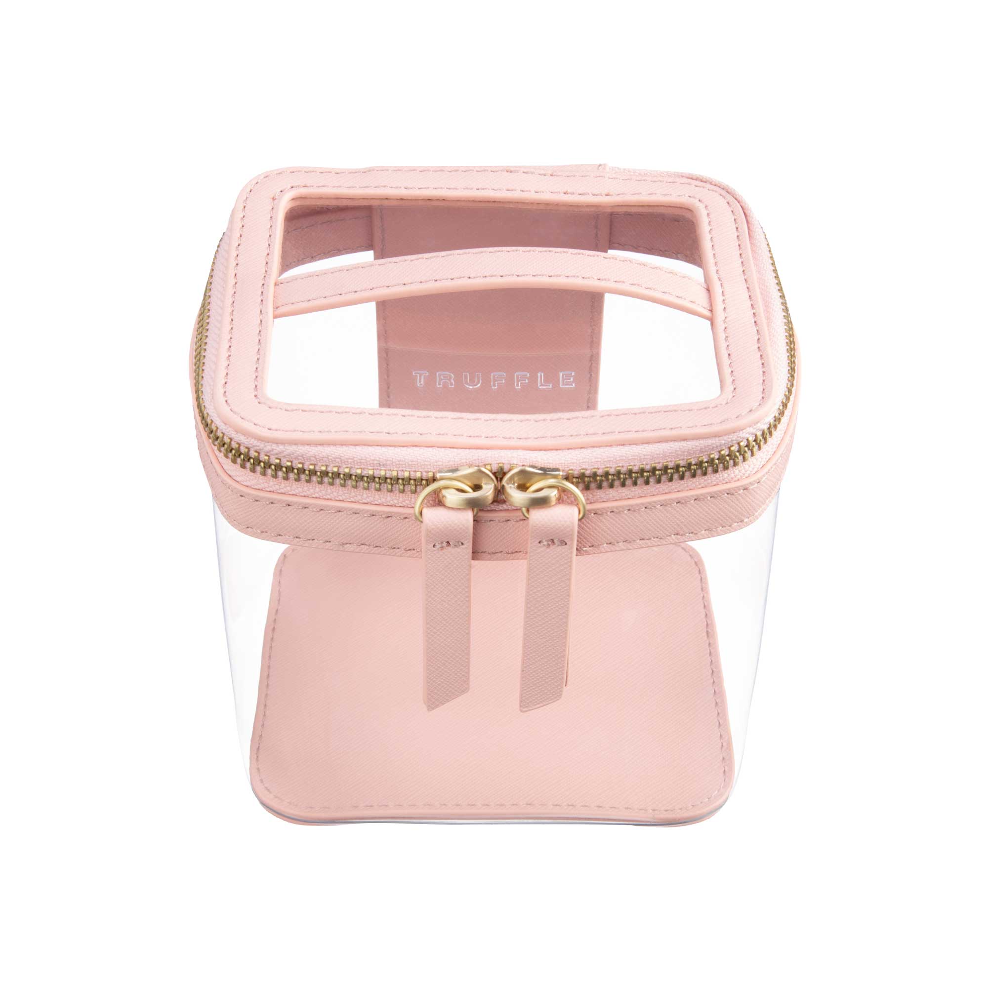 Upgraded style with a top handle. The Clarity Mini Train Case is our sweet smaller companion to the Jumbo Train Case. It's the perfect size for organizing lipglosses, nail polishes, perfume bottles or makeup, either at home or on the go. Fits neatly inside the Jumbo for storage.