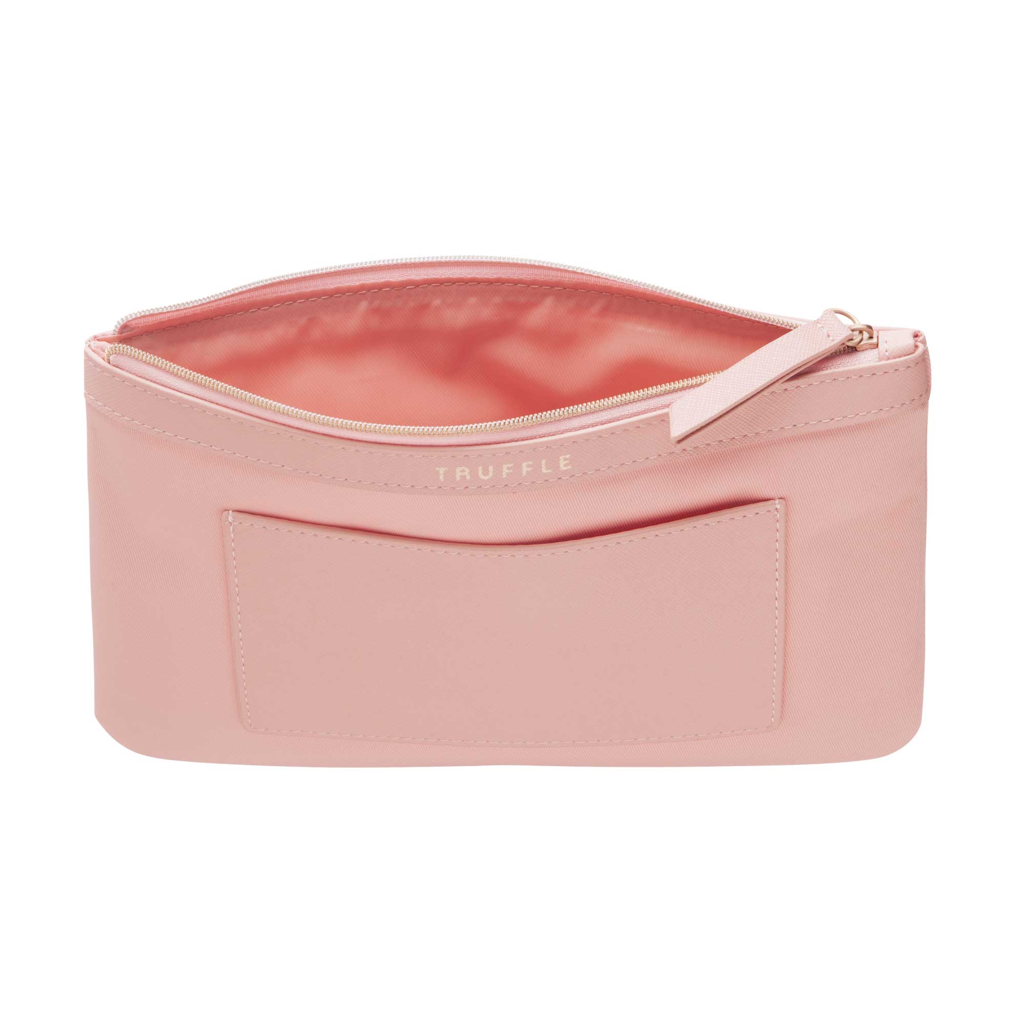 The zip pouches come in hot pink, black, toffee, and blush. These colors provide the ability to match your other luggage or add a sophisticated and fun pop of color to your travels.
